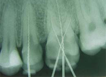 | Anschließend werden größere Nadeln genommen, damit das gesamte erkrankte Nervgewebe entfernt wird. Abwechselnd wird der Zahn dabei mit einer desinfizierenden Lösung gespült.