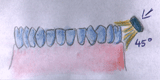 | Hierbei wird die Zahnbürste im 45° Winkel auf den Zahnfleisch- Zahnübergang gesetzt. |