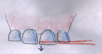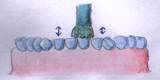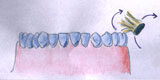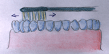 | Dann wird die Bürste leicht in die Zwischenräume gerüttelt, um anschließend vom Zahnfleisch weg "ausgewischt" zu werden. |